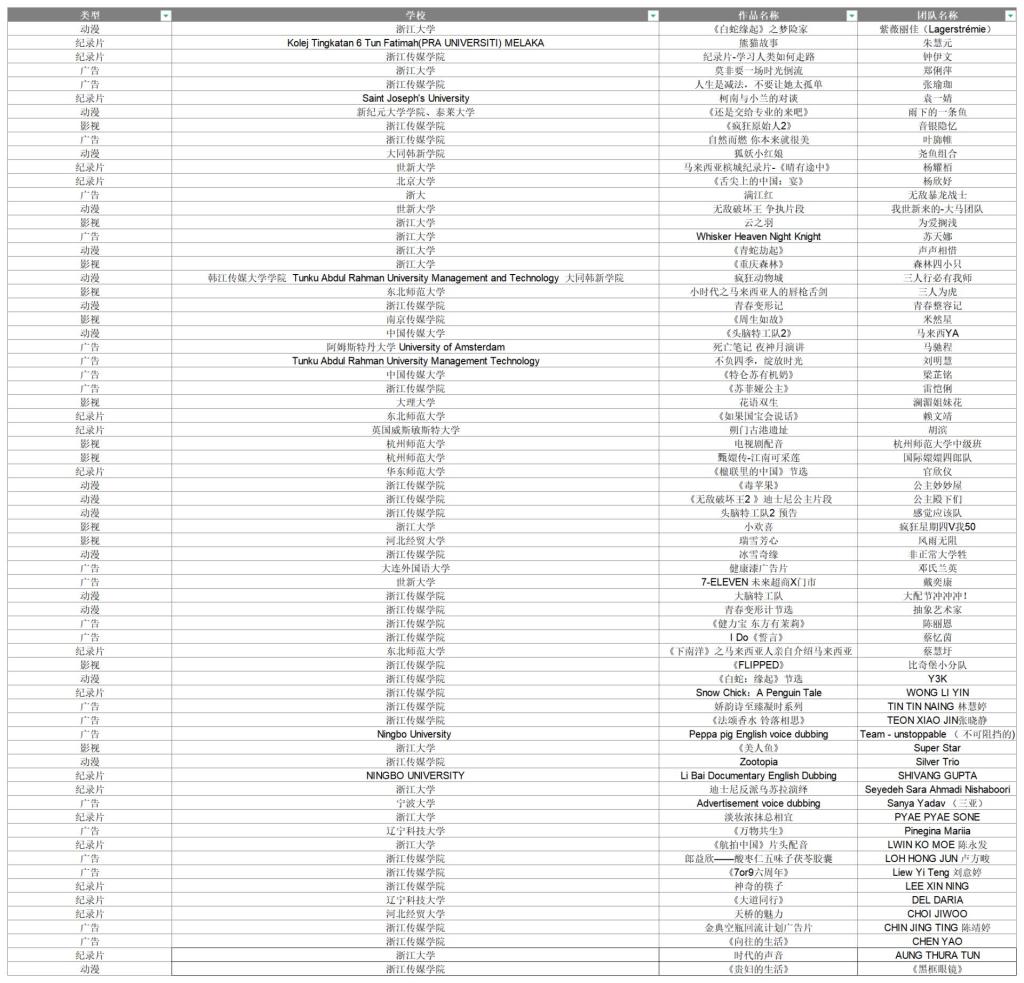 2024第五屆國際大學生配音藝術節暨鑒湖嘉年華共收到412所院校提交的各類作品13760件,參與高校和報名件數均創歷史新高。經專家嚴格評審,近700名(組)選手(團隊)成功進入線下復賽,名單如下(排名不分先后):