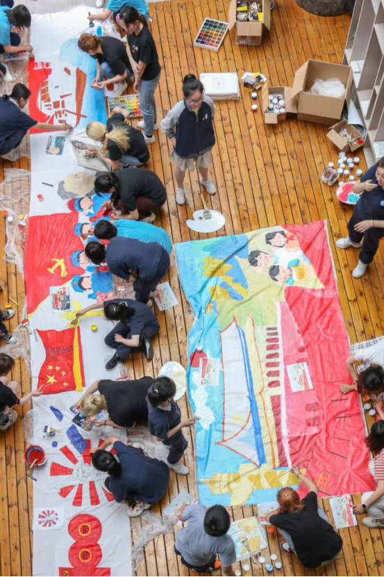 畫筆是我們共同的語言,色彩是我們對黨最誠摯的祝福。經過兩個小時的努力,動藝學子和杭州文匯同學們共同完成了這幅時代畫卷的創作,充滿樂趣的繪畫過程也讓同學們厚植愛黨、愛國、愛社會主義情感,讓紅色基因、革命薪火繼續傳承。