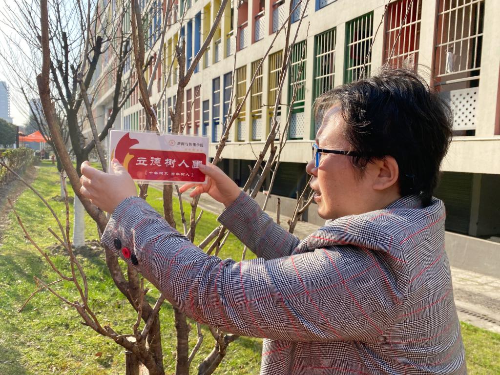 十年樹木,百年樹人。新聞與傳播學(xué)院黨委書記崔波老師將其取名為“立德樹人圃”。在某種意義上,種樹也像育人,立德就是將人扶正,新聞與傳播學(xué)院也將培養(yǎng)更多的優(yōu)秀青年黨員和團(tuán)員同學(xué),為社會貢獻(xiàn)自己的一份力量。崔波老師將“立德樹人”的牌子扶正,也希望同學(xué)們成為未來廣闊天地中優(yōu)秀的傳媒人,鐵肩擔(dān)道義,妙筆著文章。