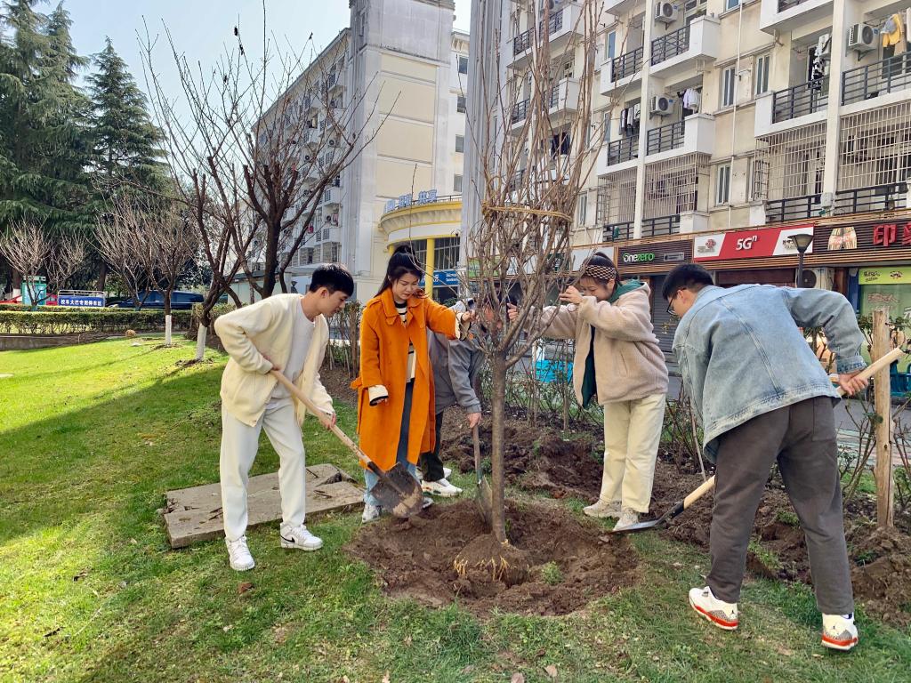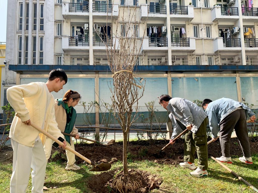 早春三月,新聞與傳播學(xué)院研究生第三黨支部在浙傳種下了兩顆櫻花樹,春風(fēng)吹新綠,植樹正當(dāng)時。