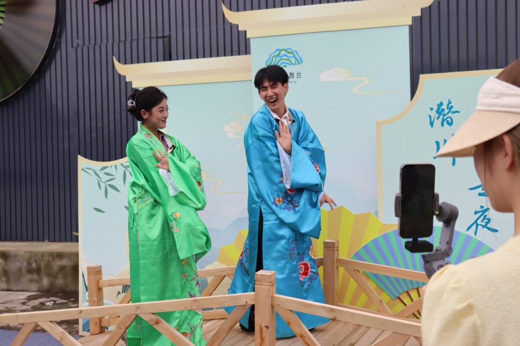 在杭州臨安潛川鎮(zhèn),同學(xué)們將自己的專(zhuān)業(yè)所學(xué)與當(dāng)?shù)貙?shí)際相結(jié)合,在直播間施展“十八般武藝”,鏡頭帶著觀眾走進(jìn)當(dāng)?shù)氐奶厣袼蕖⑺烧亍⒃絼〖o(jì)念館等地。“我們現(xiàn)在來(lái)到的是杭州市臨安區(qū)潛川鎮(zhèn)的‘深山漁村’,這里通過(guò)深化‘千萬(wàn)工程’打造成為‘網(wǎng)紅漁村’……”在直播間里,實(shí)踐團(tuán)隊(duì)成員化身鄉(xiāng)村文旅“體驗(yàn)師”“推介官”,向觀眾們介紹著當(dāng)?shù)氐奶厣w驗(yàn)特色水果采摘、農(nóng)事勞作、民俗活動(dòng)、非遺文化等。