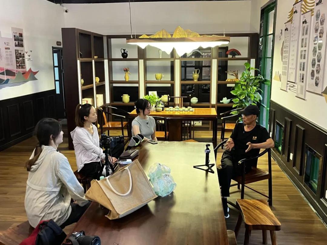 實(shí)踐隊(duì)員采訪當(dāng)?shù)剜l(xiāng)賢莫閑老師