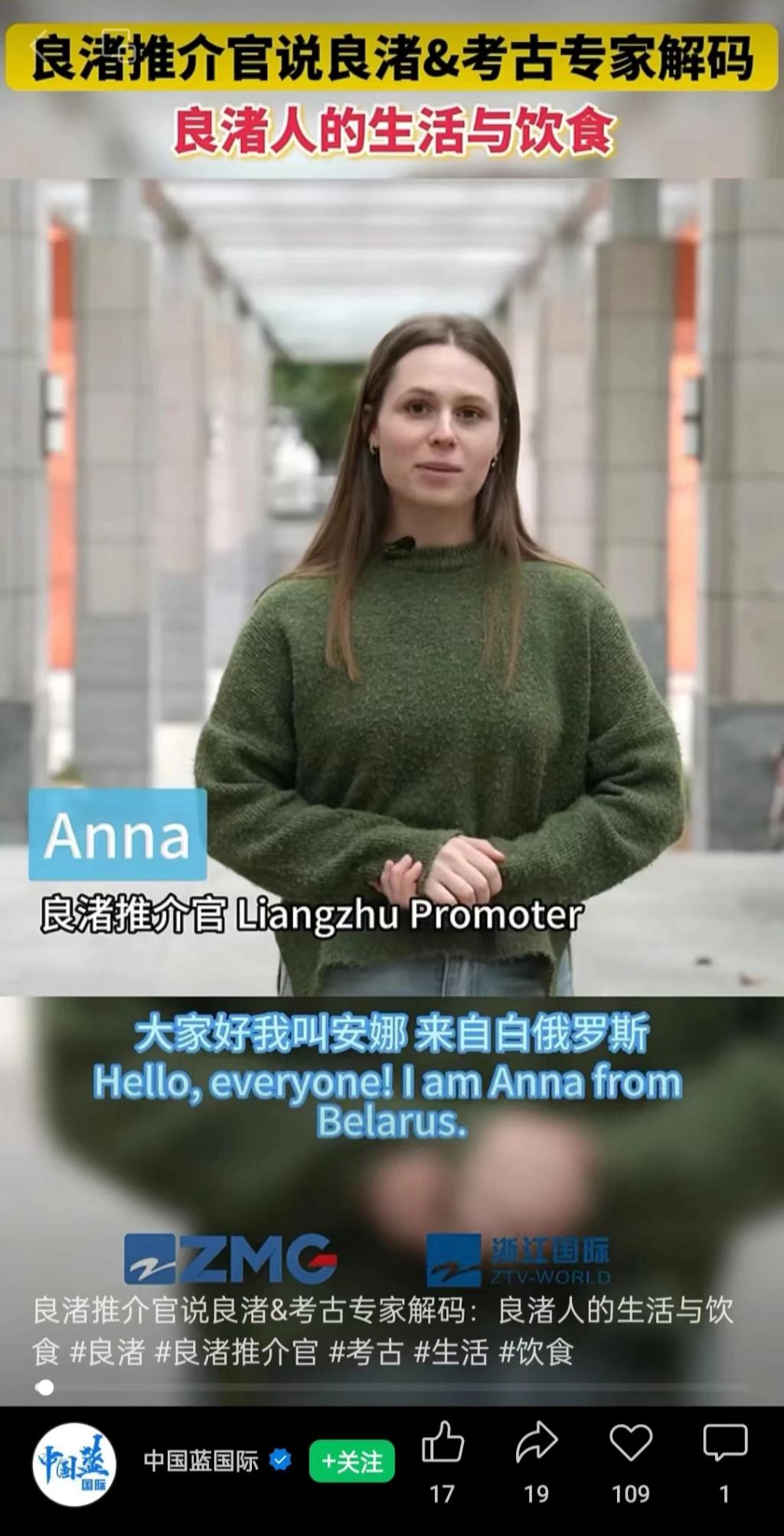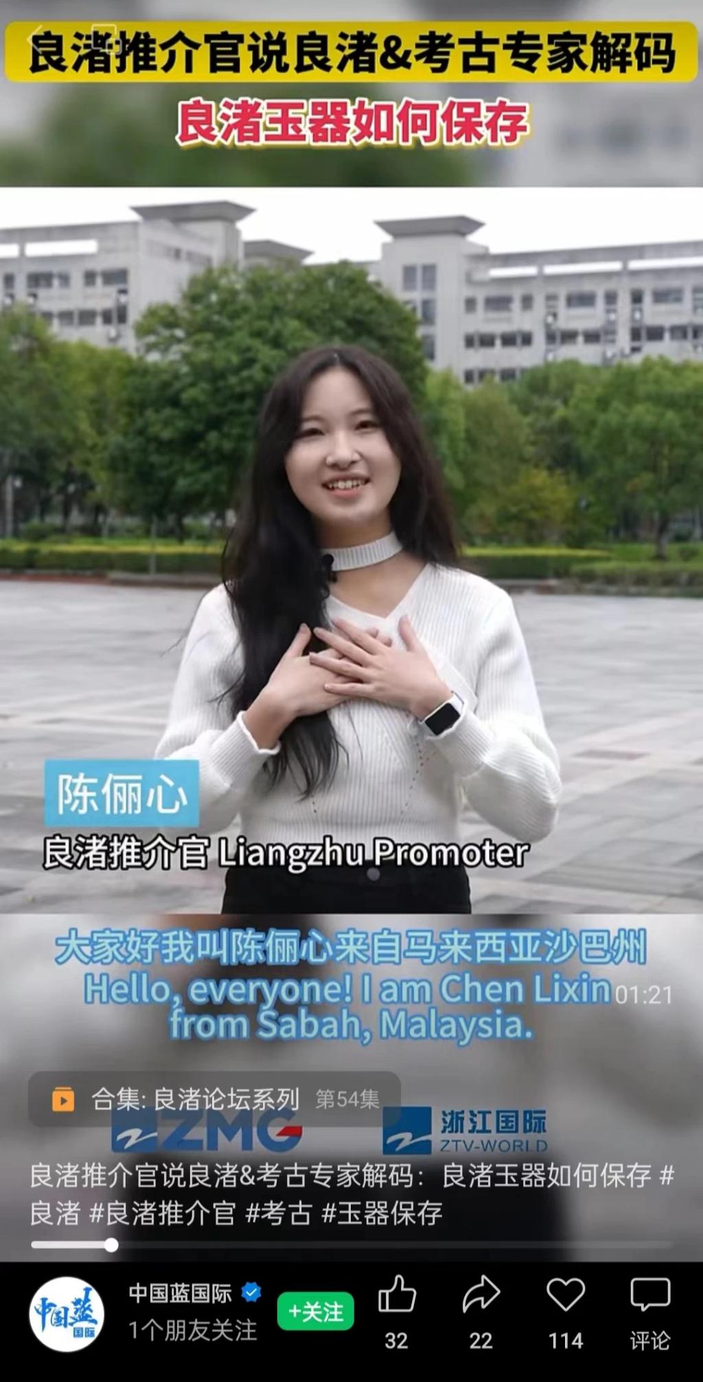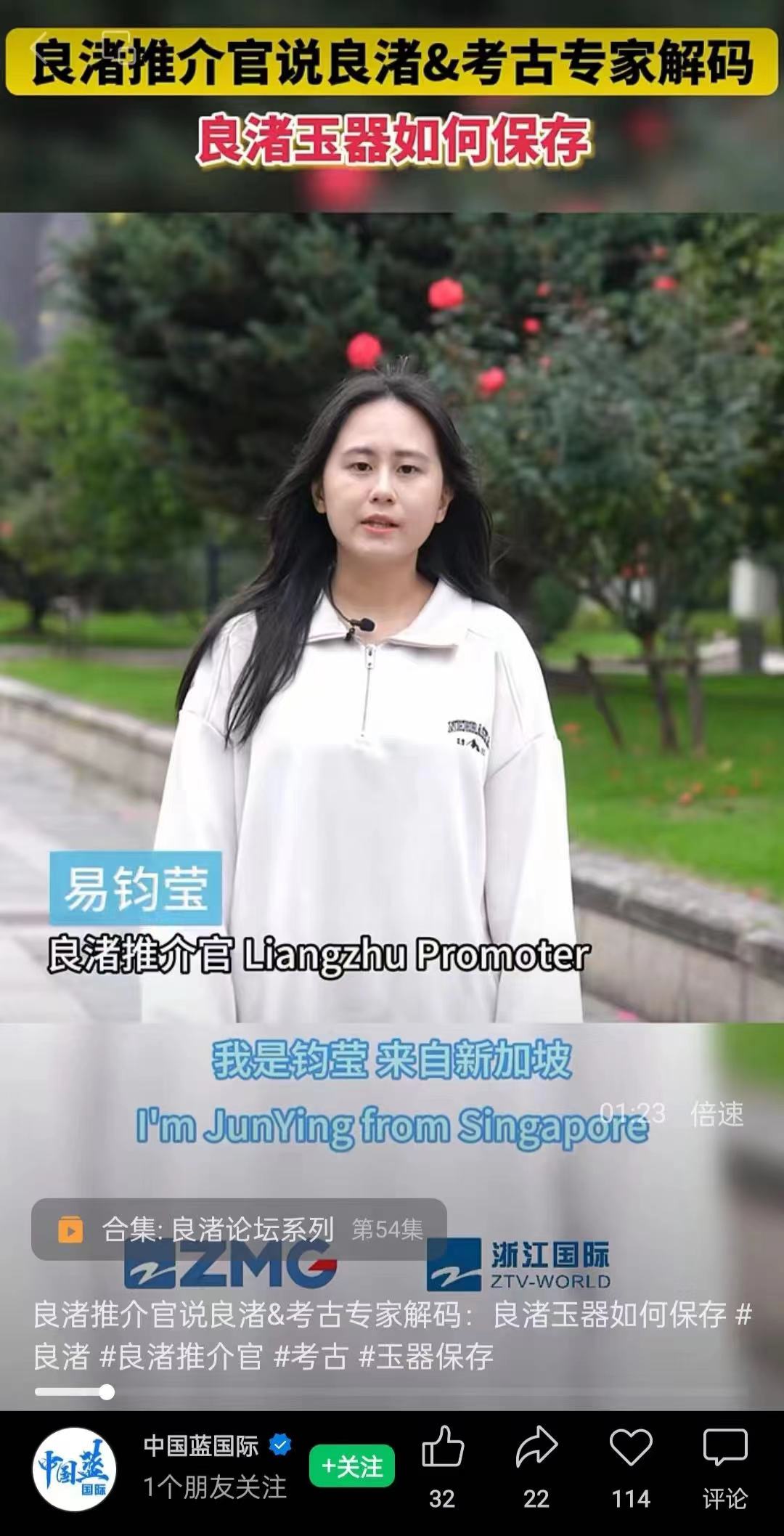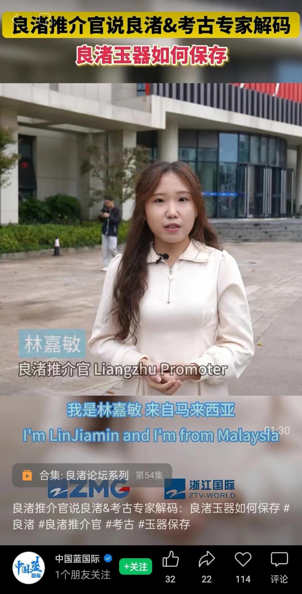 作為良渚推介官在“中國藍”國際頻道介紹良渚遺址和文化,對我而言是一次無比榮幸且意義非凡的經歷。良渚遺址作為中華文明五千年輝煌的見證,是中華文化起源的重要標志。作為一名在杭留學生,能夠通過鏡頭向觀眾講述良渚文化的深厚底蘊,不僅讓我更加深刻地領悟其在世界遺產中的獨特價值,也激發了我傳播中華優秀文化的使命感和責任感。這次機會讓我深刻體會到,講述中國故事、弘揚中華文明,不僅是一次文化交流,更是一次跨越時空的文明傳遞。希望更多的人能夠接觸良渚文化、認識良渚文化。
