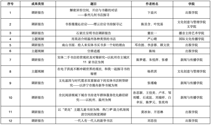 為深入學習貫徹習近平總書記關于建設書香社會的重要指示精神,今年1月以來,出版學院精心策劃并開展了“最是書香能致遠,實體書店探尋記”實體書店調研主題社會實踐活動。此次活動吸引了12支團隊踴躍參與,覆蓋編輯出版學、數字媒體與智能傳播、會展經濟與管理等多個專業。懷揣著對紙質書的熱愛和對行業轉型的關注,青年學子們深入家鄉的城市與鄉村閱讀空間,以調研為筆、實踐為墨,撰寫了一系列關于實體書店生存現狀的文化觀察報告。