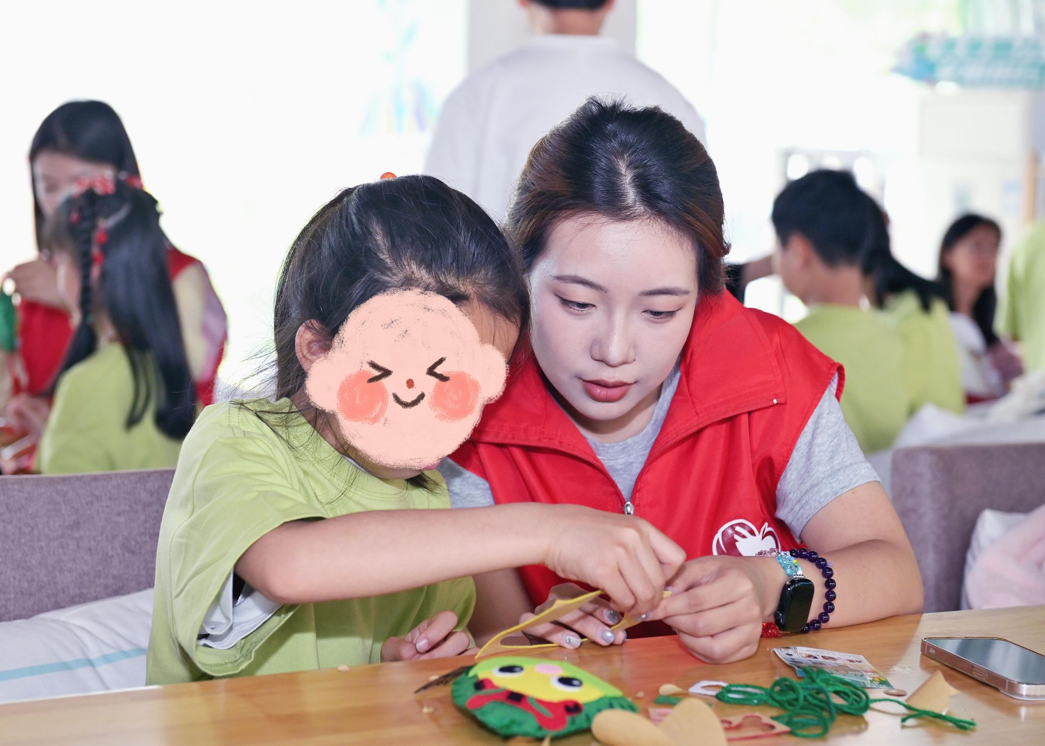 在活動正式開始前,文學院志愿者們早早來到現場準備,與小朋友們一起開展了別開生面的“端午粽情”手工活動。志愿者們耐心地教孩子們裁剪、縫制五彩斑斕的不織布粽子,現場洋溢著歡聲笑語。“我要在粽子貼個個笑臉!”“這個粽子要送給媽媽!”孩子們天馬行空的創意和志愿者們溫暖的陪伴,讓傳統文化與愛心關懷完美融合。