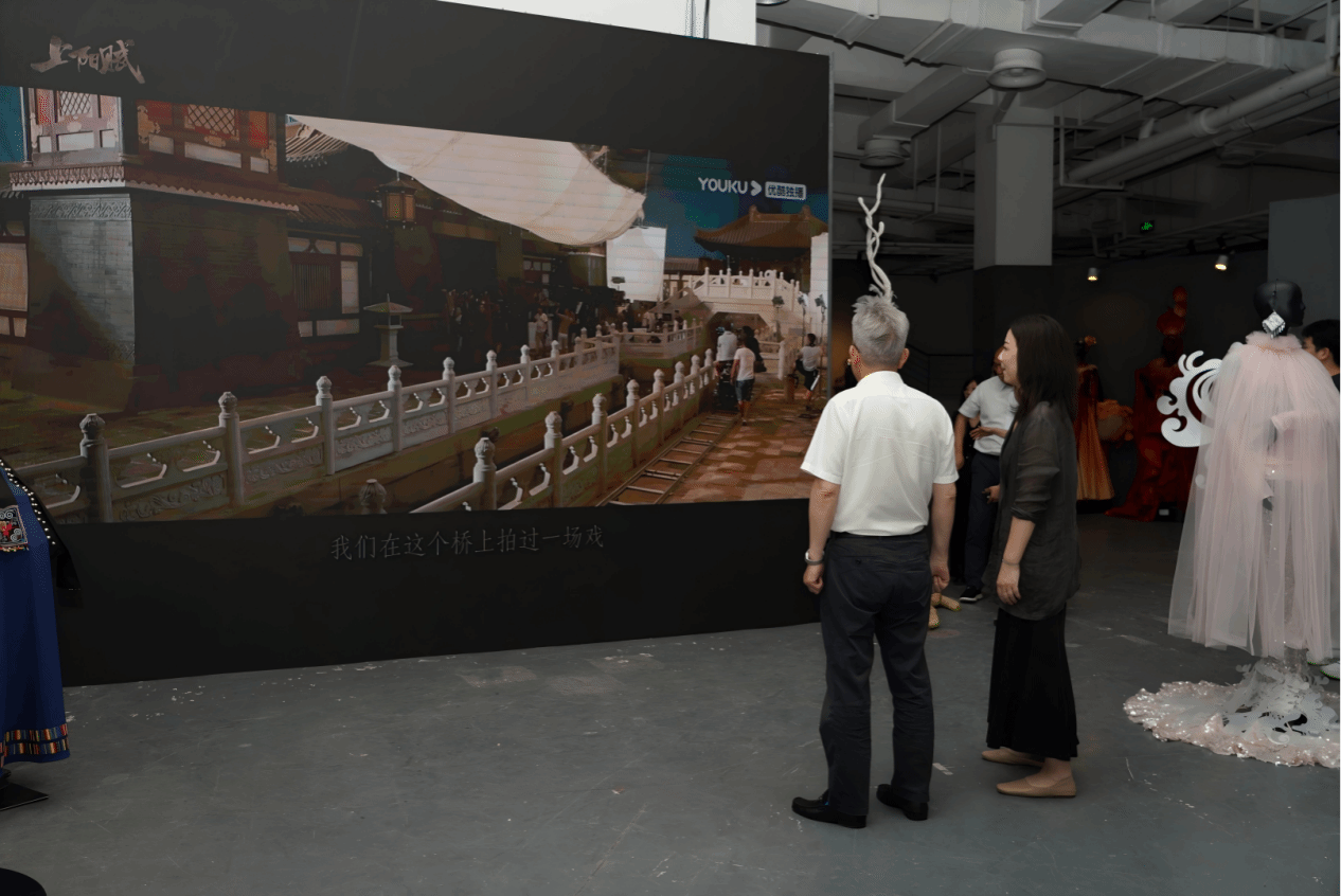 當行至“影視場景工坊”時,危怡教授重點介紹了韓忠影視美術工作室人才培養模式——該團隊已累計培育專業人才160余名,其師生參與《上陽賦》《解密》《三生三世枕上書》等多部影視劇美術設計,《風起隴西》榮獲白玉蘭最佳美術設計大獎、《覺醒年代》獲白玉蘭獎最佳美術提名獎等。韋國潭高度肯定了學院在產學研深度融合方面的創新成果,強調要持續深化項目驅動式教學模式,將行業前沿動態轉化為育人資源,培養更多懂藝術、通技術、會創新的復合型美術設計人才。