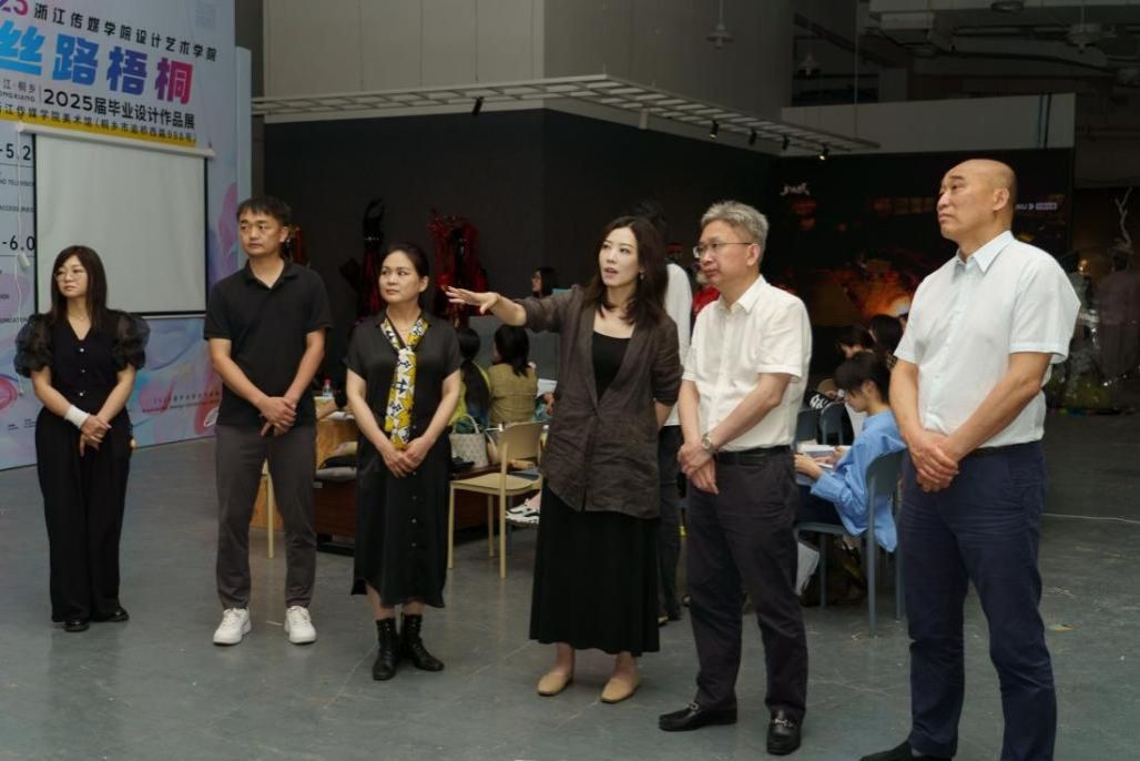 近日,浙江傳媒學院黨委書記韋國潭,黨委副書記徐偉標,紀委書記張偉波等校領導赴設計藝術學院美術館,參觀指導“絲路梧桐”2025屆畢業設計作品展(第一場)。學校辦公室、紀檢監察室、設計藝術學院等單位負責人陪同觀展。