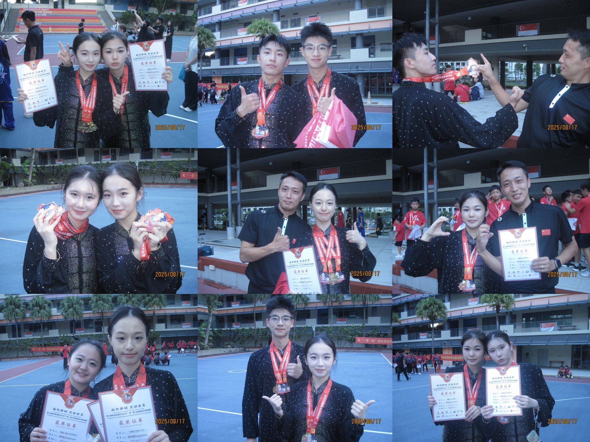 本次比賽中,我校派出的7名隊(duì)員均在個人項(xiàng)目上有所斬獲,并在集體太極器械項(xiàng)目上榮獲一等獎。此外,我校武術(shù)隊(duì)還榮獲全球武術(shù)推廣大獎,俞特老師被授予新加坡國際文化節(jié)武術(shù)項(xiàng)目推廣大使。