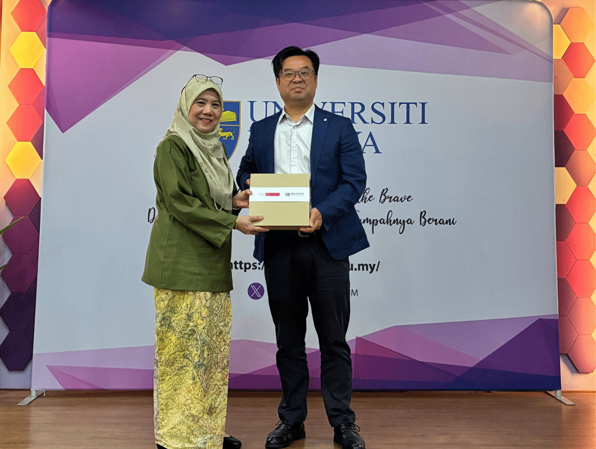 開幕上,俞定國與Norisma Binti Idris相互贈送了代表彼此校園文化的文創紀念品,見證了兩院的友誼,也彰顯了攜手共進的美好愿景。