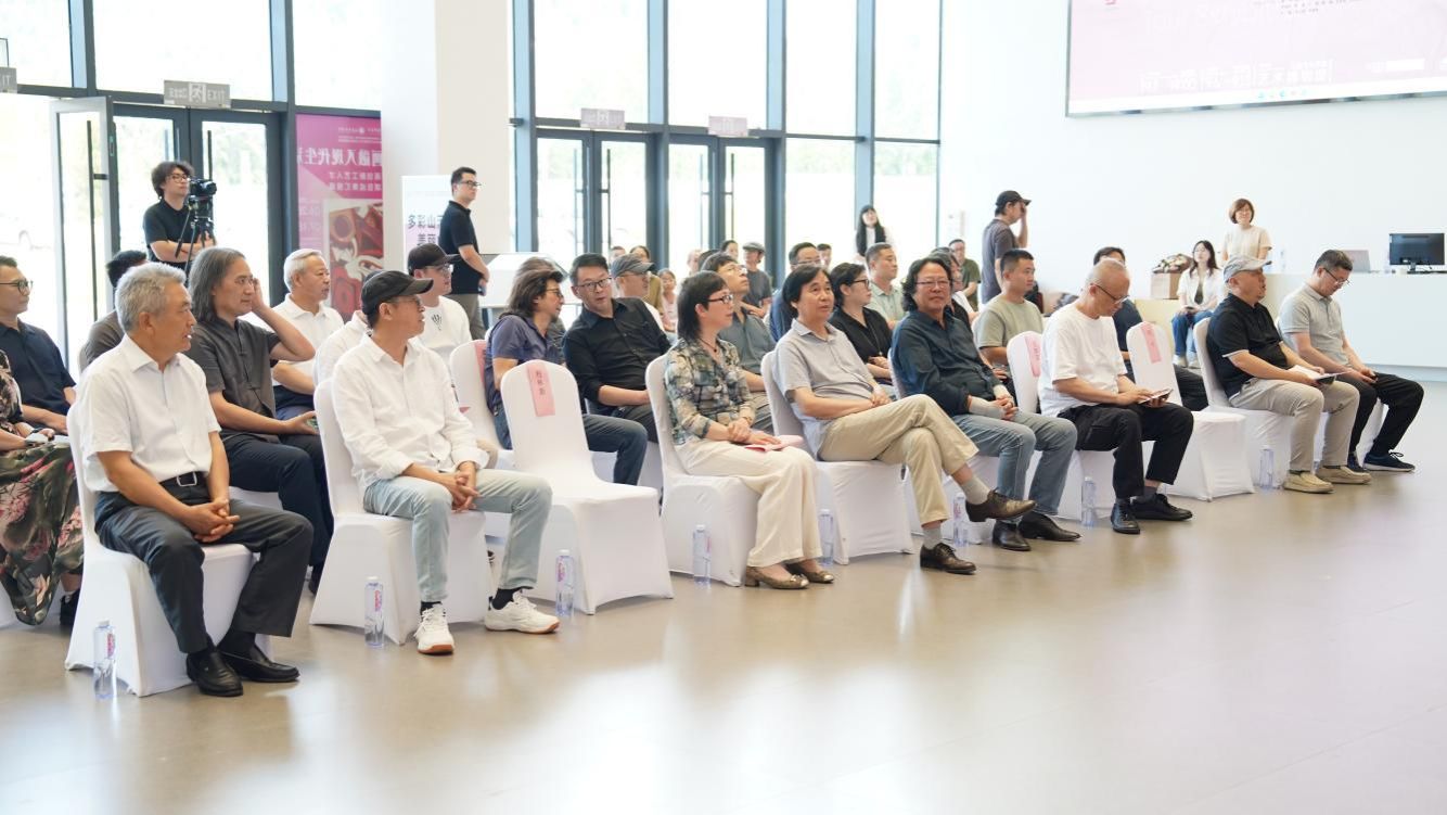 開幕式后,還舉辦了學(xué)術(shù)研討會。項目策展人郭全寶介紹了項目情況,陳國力與孔新苗及部分參展藝術(shù)家參加研討,會議由楊三軍主持。