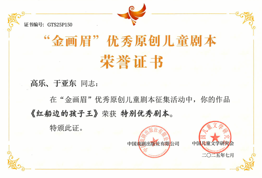 在剛剛落幕的2025年“金畫眉”優秀原創兒童劇本榮譽頒發盛典上,華策電影學院教師高樂、于亞東的原創兒童劇《紅船邊的孩子王》榮獲特別優秀兒童劇本獎。