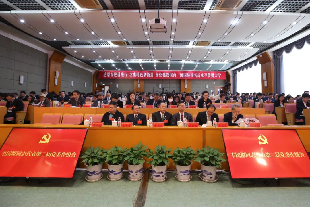韋國潭指出,學校第三次黨代會以來的五年極不平凡,在省委、省政府堅強領導下,在國家廣電總局的親切關懷下,在省委教育工委、省教育廳的直接指導下,學校黨委團結帶領全校黨員和師生員工,辦成了許多事關長遠的大事要事,取得了一系列標志性成果,學校成功獲批碩士學位授予單位及3個碩士學位授權點,實現了跨越式發展。五年來,學校堅持以政治建設為統領,黨對學校的領導全面加強;落實立德樹人根本任務,高素質傳媒人才培養成效明顯;全面推進人才強校,人才隊伍結構發生歷史性變化;牢固樹立學科龍頭地位,科研創作水平躍上新臺階;積極融入和服務國家戰略,社會合作格局有效拓展;大力推進教育對外開放,國際化辦學邁出新步伐;全面深化綜合改革,高質量辦學內生動力不斷釋放;全力建設幸福浙傳,綜合服務保障能力持續增強,為新時代學校事業快速發展奠定了堅實基礎。