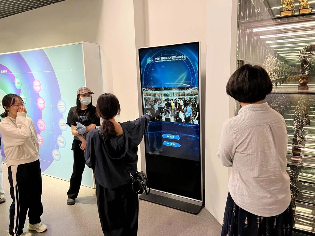 大家來到中國廣播電視藝術(shù)資料研究中心,參觀了“學習貫徹習近平新時代中國特色社會主義思想主題教育——新時代中國廣播電視藝術(shù)優(yōu)秀作品展”。本次展覽展出了《覺醒年代》《山海情》《功勛》《理想照耀中國》《外交風云》等100余件精品佳作,旨在深入開展主題教育,更好地宣傳新時代廣播電視和網(wǎng)絡(luò)視聽文藝事業(yè)取得的重大成績,不斷推動廣播電視和網(wǎng)絡(luò)視聽文藝創(chuàng)作高質(zhì)量發(fā)展。本次展覽還設(shè)置了學校成果展區(qū),展示了我校近年來取得的豐碩辦學成果。