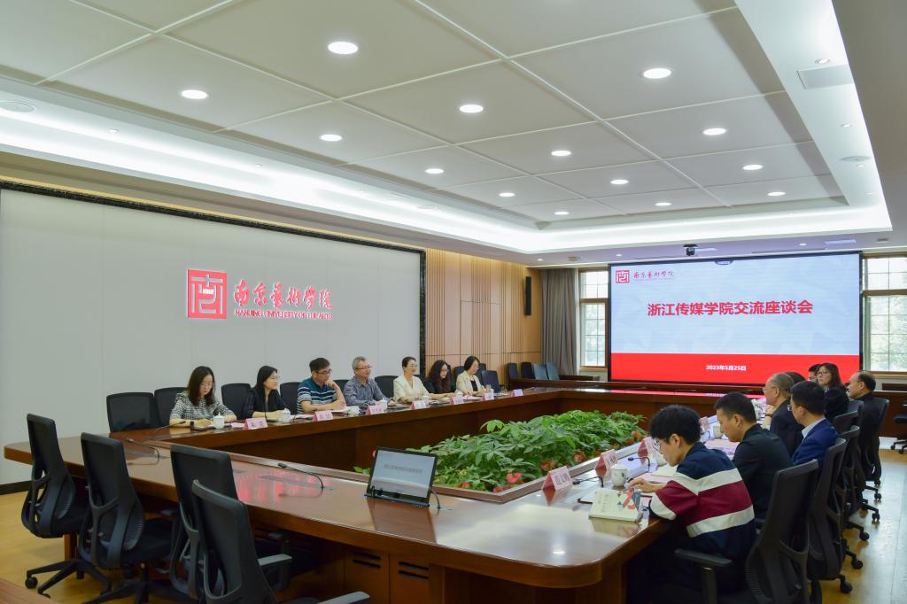 在南京藝術學院,陳詠梅從南藝520畢業展演嘉年華切入,介紹了學校的發展歷史、學科特色等。姚爭表示,兩校之間有著深厚的淵源,南京藝術學院作為全國唯一同時擁有藝術學學科門類下全部五個一級學科博士學位授予權的高等院校,有許多值得我校學習的地方,特別在順應“新文科”“藝術和科技”融合發展問題上可以進一步探討和交流。雙方就組織機構設置、學科建設、研究生(本科生)教育管理、國際學生管理體制和工作機制改革等進行了研討。