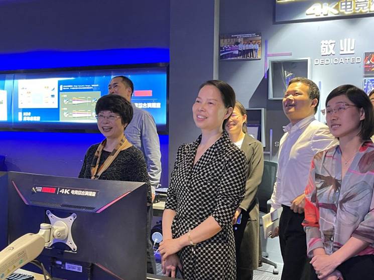 會前,宋劍波一行實地走訪了學校4K電競綜合實驗室和亞運會訓練場館足球場。