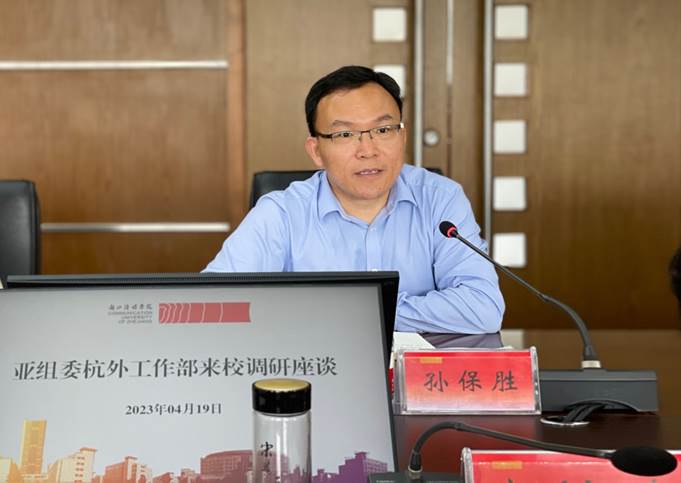 4月19日上午,亞組委杭外工作部部長宋劍波一行來我校調研座談。副校長張梁,校黨委委員、宣傳部部長、統戰部部長孫保勝和相關單位負責人參加座談。
