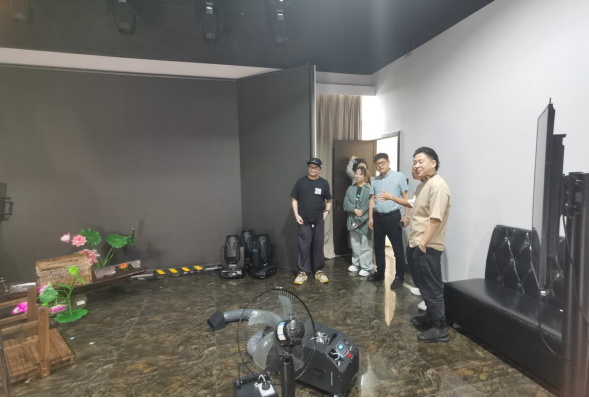 趙月峰一行來到浙江壹歌文化傳媒有限公司,在董事長王峰的介紹下,參觀了公司新媒體推廣業務模塊運行,了解了藝人直播及后臺技術保障情況,同時參觀了公司錄音硬件設施情況,就學院“豐子愷”杯第五屆世界互聯網音樂大賽項目推進以及畢業生實習就業工作開展深入交流。