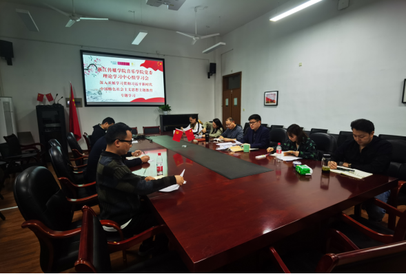 為深入開展學習貫徹習近平新時代中國特色社會主義思想主題教育,把理論學習做深做實。4月25日下午,音樂學院黨委召開學院理論學習中心組主題教育專題集中學習會議。主要學習內容為《習近平著作選讀》《習近平新時代中國特色社會主義思想學習綱要》兩本著作,原原本本讀原著,分享學習心得。學院黨委委員、副院長、分工會主席、分團委書記、三辦主管、各黨支部書記等參加學習。