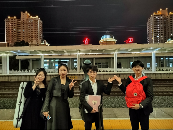參演師生作為音樂學院藝術團器樂藝術團成員,以弦樂四重奏組形式參與過多場演出,包括鳳凰湖音樂節、錢君陶紀念館活動、MV 江南濮家發布會、浙傳桐鄉校區清風廣場揭牌儀式等活動,具有豐富的舞臺經驗,但是像本次與朗誦者合作、以及快閃的形式,還是第一次嘗試。同學們覺得這種嘗試很新穎,也樂在其中。特別是在快閃演出中,面對觀眾的鏡頭,完全沒有了以前的緊張感,很自然地和觀眾們分享著音樂的美好。本次青田之行,同學們感覺收獲很大,從排練、彩排、演出都認真投入,在舞臺上磨練自己的專業本領,在舞臺外也能展示出自己的風采。