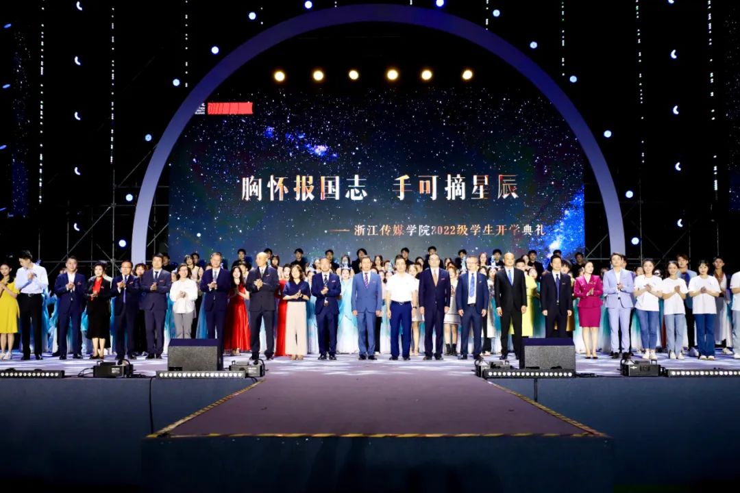 9月23日晚,我校2022級新生開學典禮在桐鄉烏鎮校區體育場舉行。校黨委書記楊立平以視頻形式致辭,校長徐小洲,副校長楊榮耀、姚爭、張梁,紀委書記徐偉標,副校長李文冰,黨委副書記陳永斌,校黨委委員、組織部長陳兵,校黨委委員、宣傳部部長、統戰部部長孫保勝;桐鄉市委書記于會游、市人大常委會副主任徐劍東、副市長何珊瑚、市政協副主席蘇偉明出席開學典禮。相關職能部門和二級學院負責人、軍訓教員、班主任、輔導員以及全體新生參加。開學典禮在中國藍新聞客戶端、抖音、微博,浙江傳媒學院視頻號、抖音、微博等平臺同步直播。