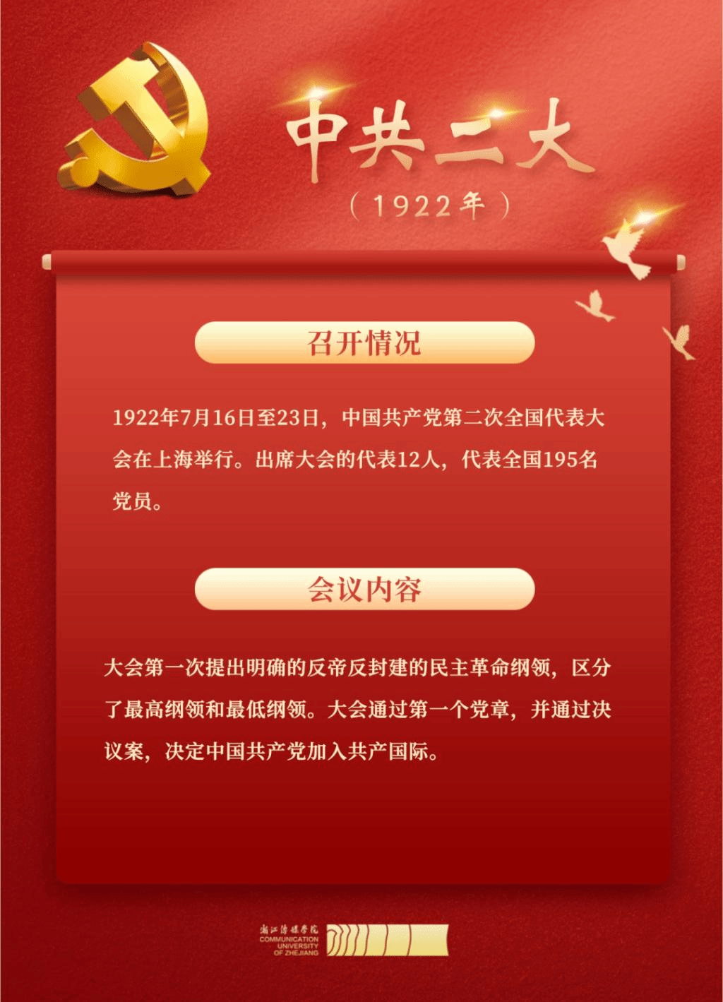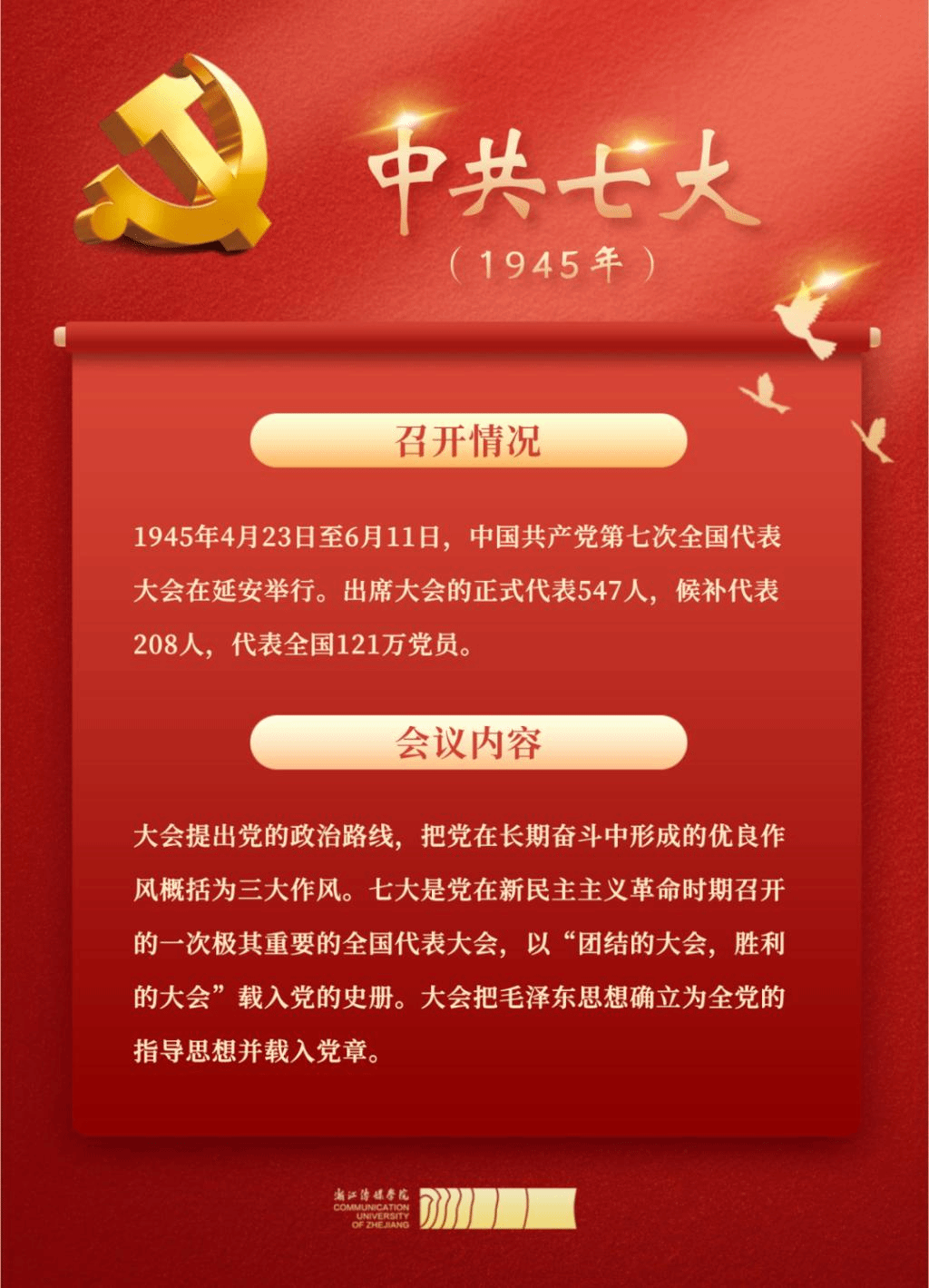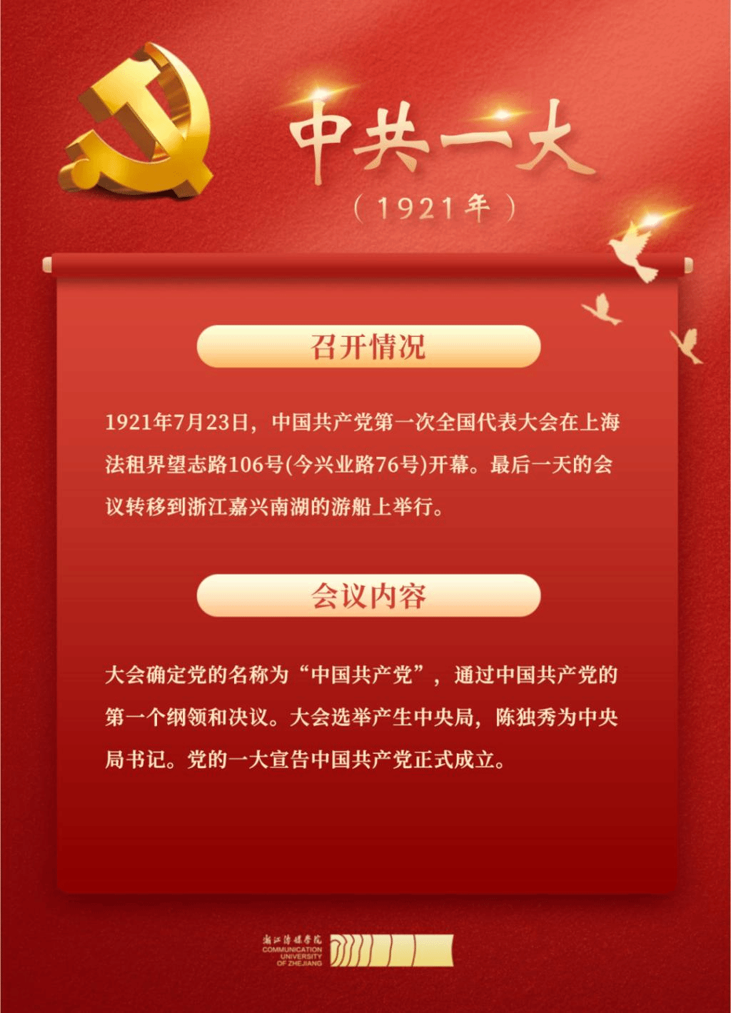 1921年,中國(guó)共產(chǎn)黨第一次全國(guó)代表大會(huì)召開(kāi),宣告中國(guó)共產(chǎn)黨正式成立,13名平均年齡28歲的年輕人代表了全國(guó)50多名黨員,如今中國(guó)共產(chǎn)黨黨員總數(shù)已超9671萬(wàn)名。