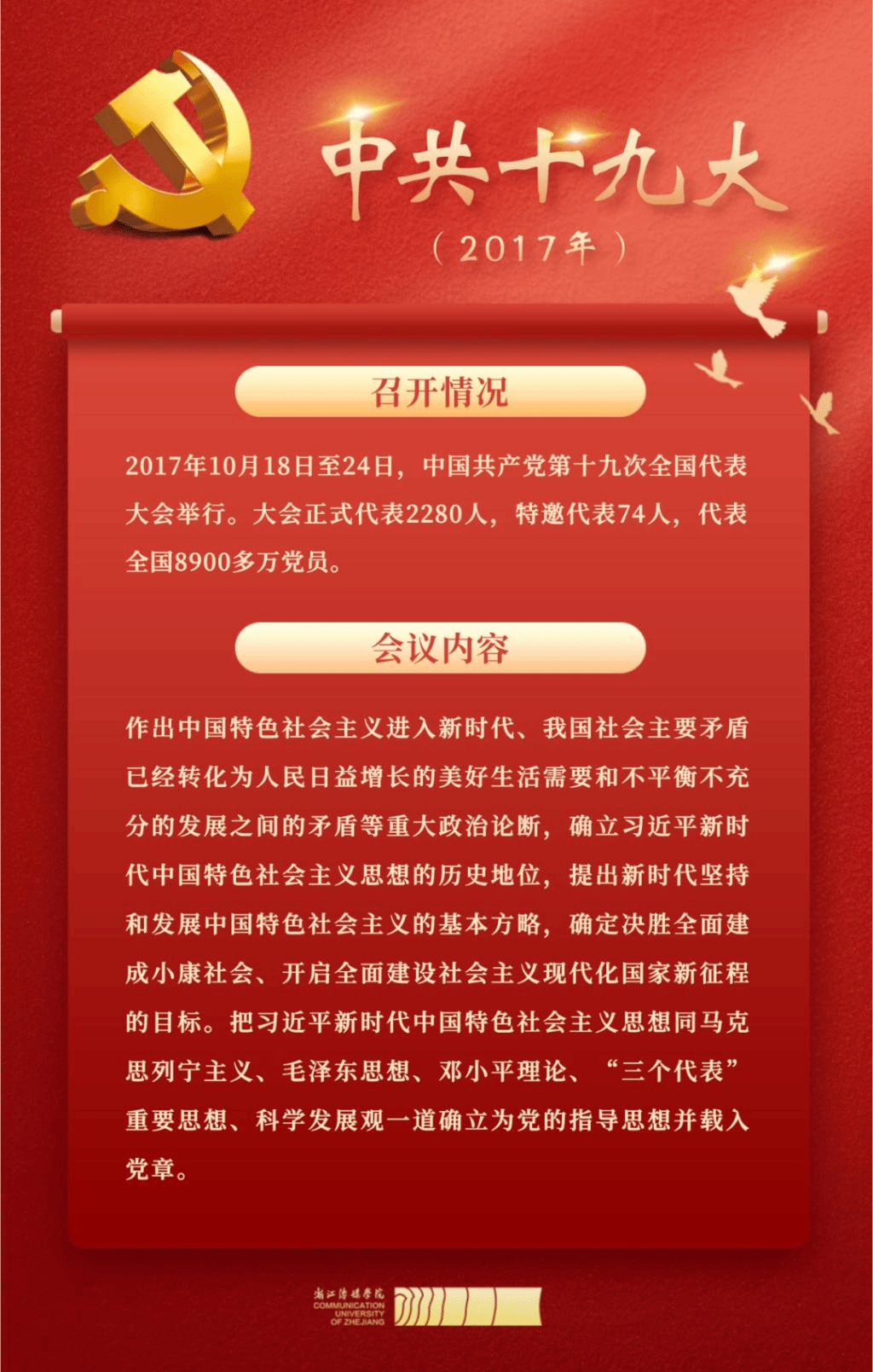 中國(guó)共產(chǎn)黨第二十次全國(guó)代表大會(huì)召開(kāi)在即,今天讓我們一起速覽中國(guó)共產(chǎn)黨19次黨代會(huì)“極簡(jiǎn)史”,快來(lái)一起學(xué)習(xí)吧!