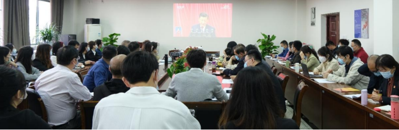 10月16日上午,中國(guó)共產(chǎn)黨第二十次全國(guó)代表大會(huì)在北京人民大會(huì)堂隆重舉行。中共中央總書記、國(guó)家主席、中央軍委主席習(xí)近平代表第十九屆中央委員向黨的二十大作報(bào)告。新聞與傳播學(xué)院在第二實(shí)驗(yàn)樓311會(huì)議室設(shè)置集中觀看分會(huì)場(chǎng),學(xué)院黨委書記崔波,院長(zhǎng)李欣,黨委副書記曾真,黨委委員吳生華、張雨雁、周玉蘭及全體教工黨員、學(xué)生黨支部代表到場(chǎng)觀看大會(huì)直播。師生黨員回顧歷史進(jìn)程,感悟思想偉力,激蕩起“不忘初心,矢志前行”的澎湃豪情。