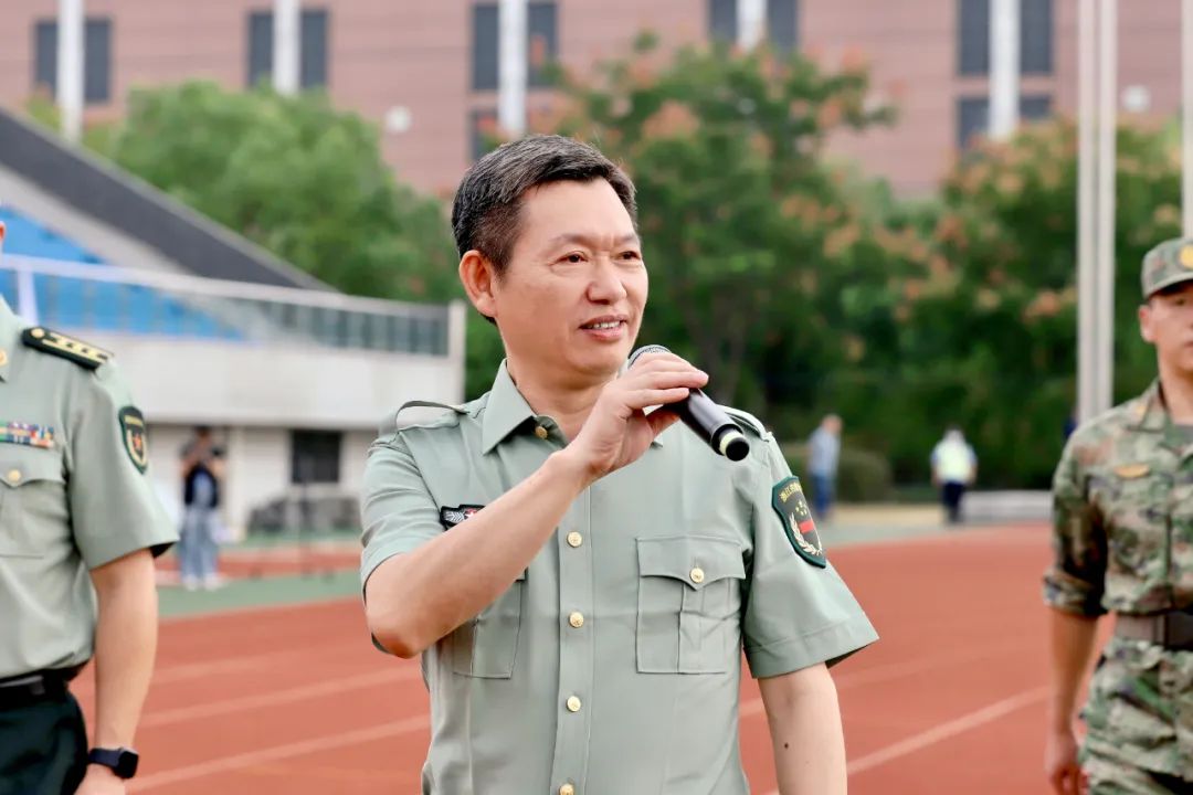 我校校長徐小洲,副校長楊榮耀、姚爭、張梁,紀委書記徐偉標,副校長李文冰,黨委副書記陳永斌,黨委委員、組織部部長陳兵,黨委委員、宣傳部部長、統戰部部長孫保勝,杭州市錢塘區人武部上校部長王雷,杭州市錢塘區人武部軍事科科長、浙江傳媒學院2022級學生軍訓團副參謀長孫千秋和學生軍訓工作領導小組成員出席,大會由陳永斌主持。