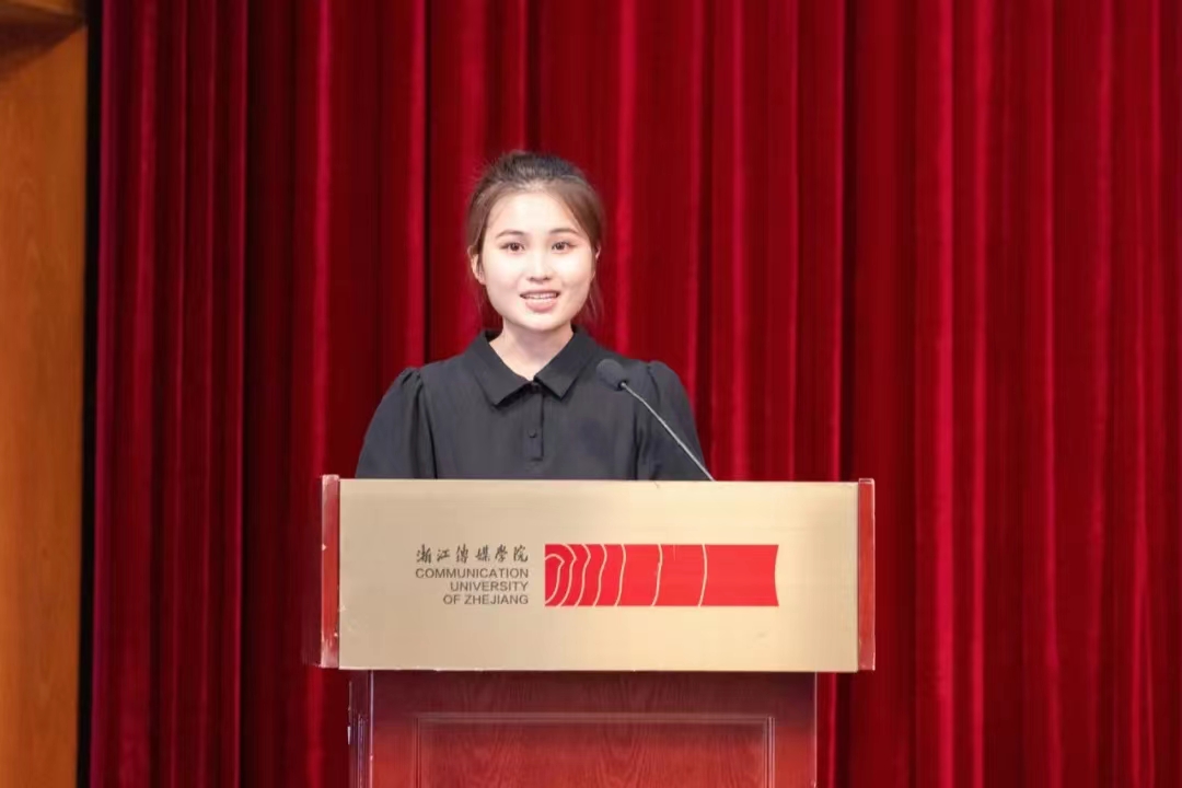 校學生會主席團成員、國際文化傳播學院2020級雙播班何紫栩代表全體學生向辛勤工作的老師們致以最崇高的敬意,獻上最真摯的祝福。她表示,我校教師始終用“德”與“愛”鋪就引領學校事業與學生發展的光明大道,以赤誠之心、奉獻之心、仁愛之心投身教育事業。她呼吁我校學子不負期望,將老師們的栽培化作成長路上最堅實的后盾,在廣闊天地中經風雨、見世面、壯筋骨、長才干,奮力書寫不負青春、不負韶華的時代新篇章。