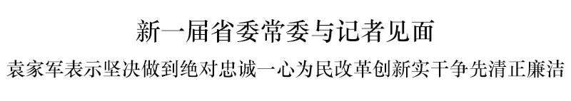 袁家軍向記者介紹各位省委常委,并代表新當選的省委常委班子,對全省廣大黨員干部群眾的信任和支持表示衷心感謝。隨后,他說,我們新一屆省委常委班子履新于特殊節點,接過了歷史接力棒,深感責任特別重大、使命特別光榮。這是因為浙江是“紅色根脈”,守好“紅色根脈”是新一屆省委常委班子沉甸甸和光榮的政治責任;這是因為浙江進入了嶄新征程,忠實踐行“八八戰略”、堅決做到“兩個維護”、奮力推進“兩個先行”,是新一屆省委常委班子必須肩負的職責使命。省黨代會確定了未來浙江發展宏偉藍圖,常委會一班人作為領導集體,要對標習近平總書記賦予浙江的目標定位,對照全省426萬黨員和6500多萬浙江人民的信任期待,堅決擁護“兩個確立”、堅決做到“兩個維護”。
