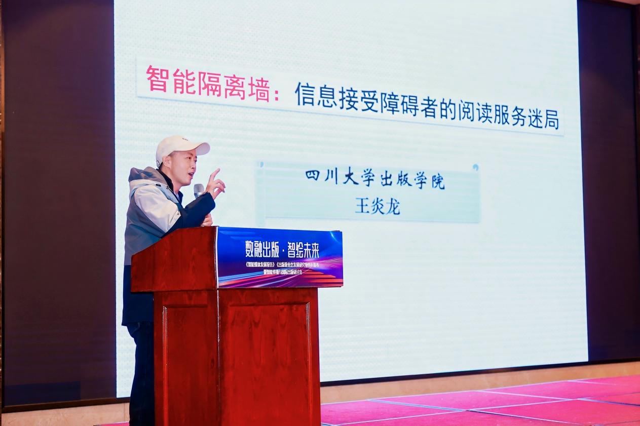 四川大學出版學院、四川大學文化傳播研究中心主任、教授王炎龍作題為《智能隔離墻:信息接受障礙者的閱讀服務迷局》的報告。他認為要高度關注信息接受障礙者,提出了技術賦能賦權、技術鴻溝、技術共享與文化共融等諸多問題,指出要通過從數字包容到智能包容、從供需失衡到服務均等、從技術共享體到信息共同體等路徑來破除迷局。