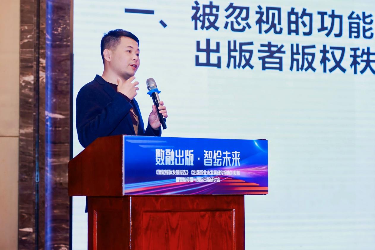 華東師范大學傳播學院副教授于文作題為《智能傳播時代出版者的版權秩序管理功能》的報告。他提出了服務化版權治理的理念原則,分析了數智時代服務化版權治理的轉型趨勢,通過推動版權服務的數字化與智能化,平臺將為數智時代的內容傳播和創新創造更廣闊的空間,實現多方共贏。