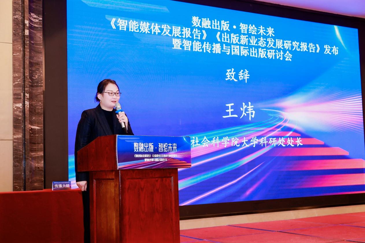 12月15日,“數融出版·智繪未來”《智能媒體發展報告》《出版新業態發展研究報告》發布暨智能傳播與國際出版研討會在杭州舉行。本屆研討會由浙江傳媒學院出版學院、浙江省新型重點培育智庫浙江省社會治理與傳播創新研究院、長三角智能傳播研究院共同主辦,浙江傳媒學院人文社科學部、浙江省傳播與文化產業研究中心協辦。韜奮基金會第五屆理事會副理事長、秘書長魏玉山,中國社會科學院新聞與傳播研究所所長、中國社會科學院大學新聞傳播學院院長胡正榮,中國社會科學院大學黨委常委、副校長張樹輝,浙江日報報業集團黨委委員、副社長、傳播大腦董事長錢偉剛,浙江傳媒學院黨委副書記、副校長(主持行政工作)韋路,浙江出版聯合集團、中國社會科學出版社、中國社會科學雜志社、《出版發行研究》《出版科學》《中國出版》《編輯之友》等出版業界代表,浙江大學、四川大學、華東師范大學、中國傳媒大學、陜西師范大學、浙江工商大學等高校學者代表,學校有關職能部門、二級學院負責人、師生代表共120多人參加研討會。開幕式由副校長李文冰主持。