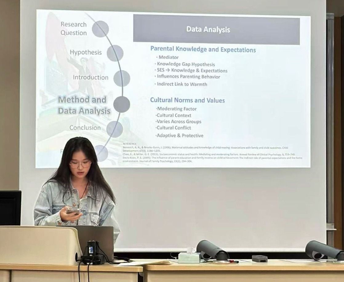 研學期間,同學們根據指導老師意見,自主選擇了“AI賦能學術研究”“媒體中的女性表達”“多維度因素對匯率的影響”等課題,初步掌握了獨立開展學術研究的基本流程與方法。此外,學生還走訪了劍橋多個學院與教授工作室,沉浸式體驗其深厚的歷史文化與學術傳統。在最后的結題匯報中,同學們以流暢的表達和嚴謹的研究成果,贏得了劍橋師生的一致好評。