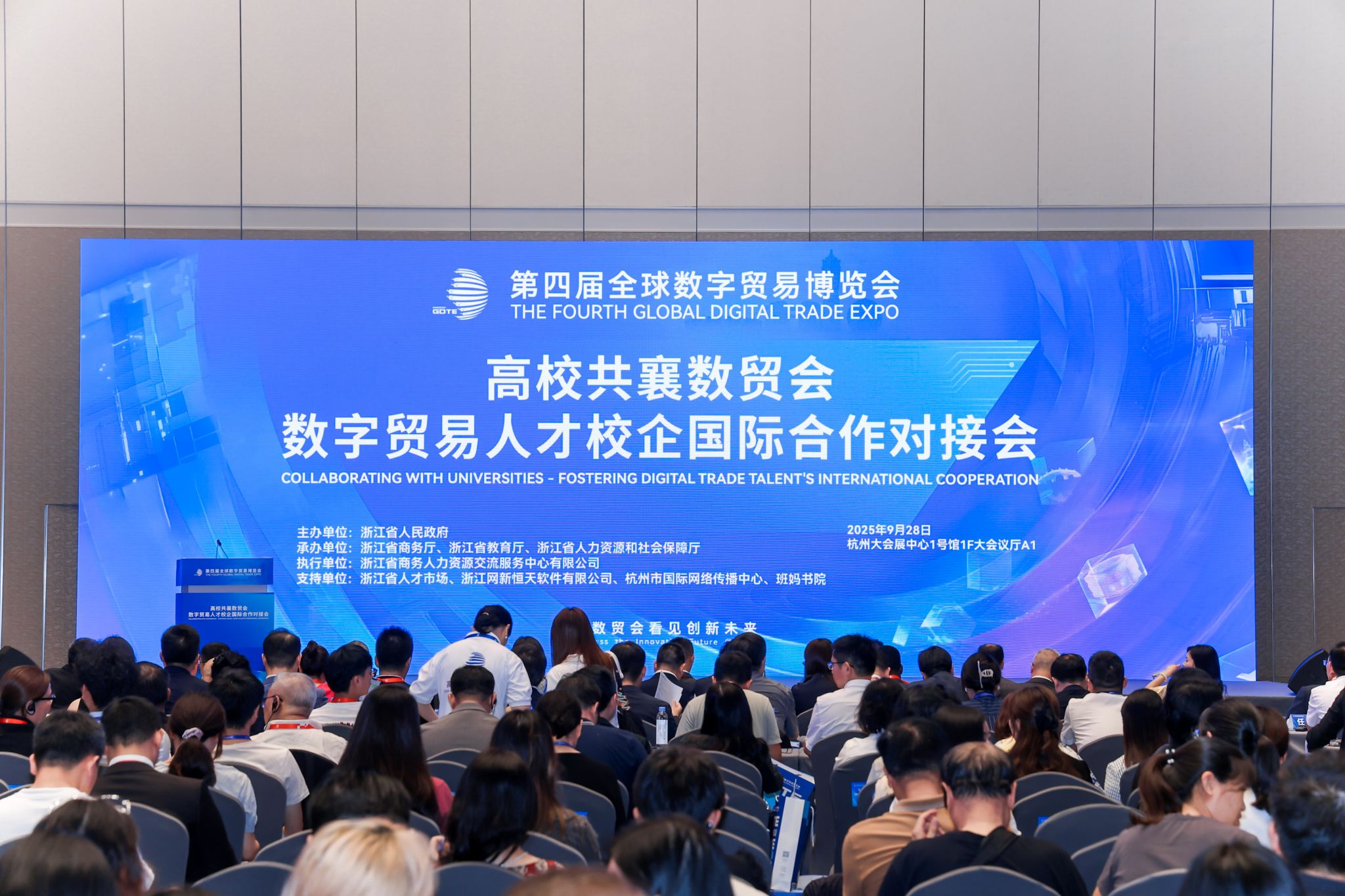 9月28日,第四屆全球數字貿易博覽會“高校共襄數貿會—數字貿易人才校企國際合作對接會”在杭州大會展中心舉行。作為中國唯一以數字貿易為主題的國家級、國際性專業展會重要配套活動,此次對接會由浙江省人民政府主辦,浙江省商務廳、教育廳、人力資源和社會保障廳聯合承辦,旨在搭建高校、企業與政府間的深度對話平臺,推動數字貿易技能型人才培養與數字經濟創新發展。