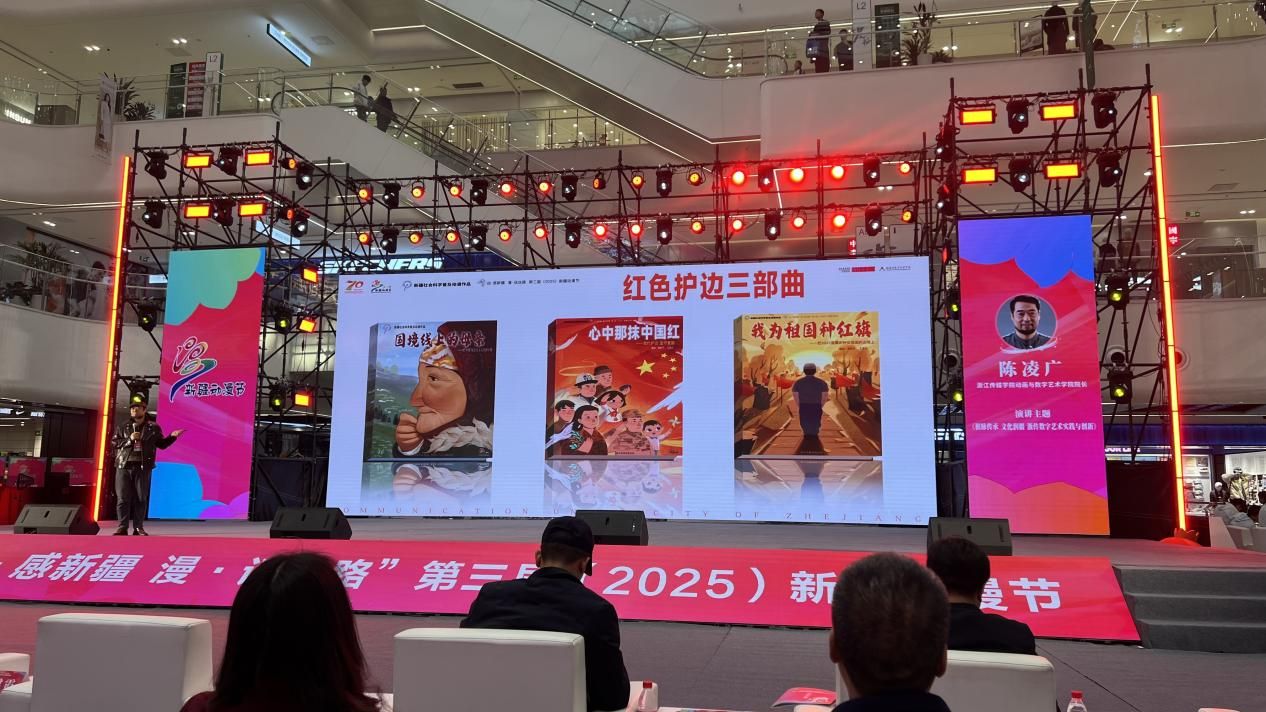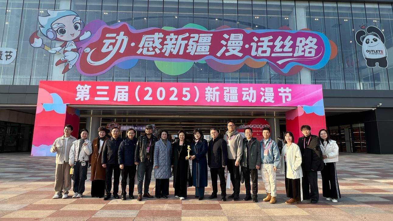 2025年10月19日,第三屆(2025)新疆動漫節在烏魯木齊經開區砂之船超級奧萊正式啟幕。本屆動漫節以“動?感新疆 漫?話絲路”為主題,由自治區社科聯、自治區黨委網信辦、自治區科協聯合主辦,為期一周的活動將為全國動漫愛好者呈現一場兼具文化深度與創意活力的交融盛宴。本屆動漫節吸引了全國13個省區、疆內14個地(州、市)的50余所院校、近50家動漫企業及廣大動漫愛好者踴躍參與?;顒訃@鑄牢中華民族共同體意識主線,借力動漫這一年輕群體喜聞樂見的載體,講好新疆故事,引領“Z世代”青年共同描繪中國式現代化的新疆畫卷,為新疆維吾爾自治區成立70周年獻上文化厚禮。浙江傳媒學院受邀攜多部新疆題材動漫作品參展,其中插畫作品《心中那抹中國紅》斬獲動漫作品大賽二等獎,湛勝平、顏勇兩位教師執導的師生團隊力作《百年老街王三街》《逆境中綻放的堅韌之花》同步亮相,以數字藝術講好新疆故事,為"文化潤疆"工程注入創新活力。