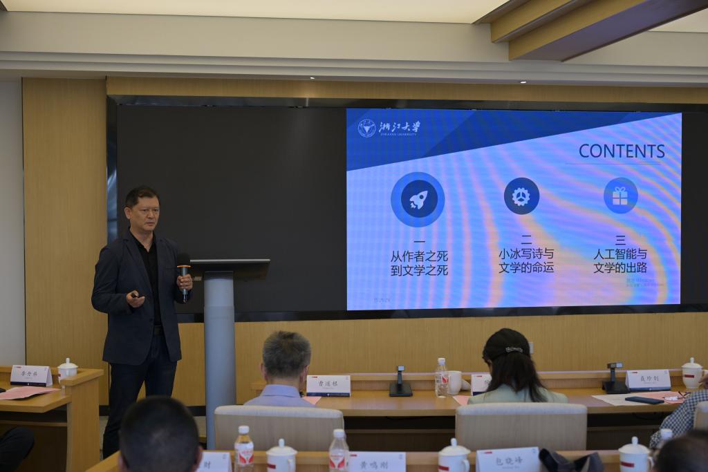 浙江大學外國語言文學學院教授、博導,F(xiàn)orum for World Literature Studies(ESCl收錄)國際期刊副主編,楊革新作了題為《人工智能時代文學研究的危與機》的發(fā)言,主要對人工智能發(fā)展下文學的機遇與挑戰(zhàn)相關(guān)問題進行分析與展望。