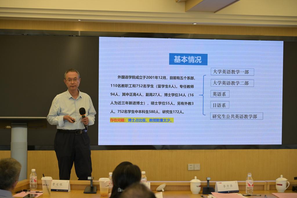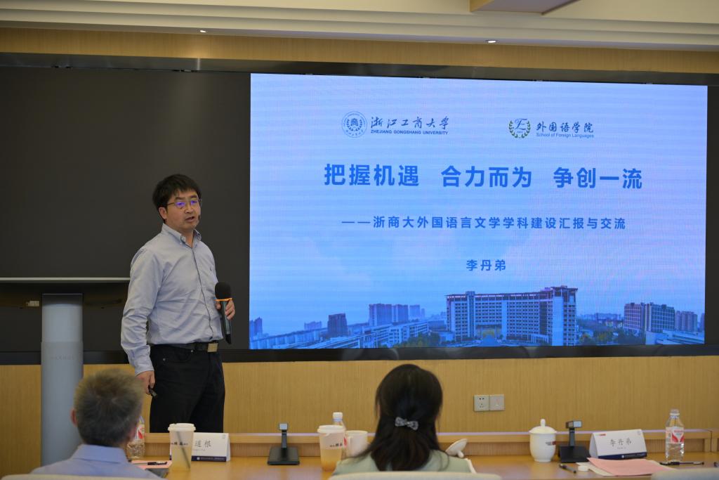 浙江工商大學外國語學院院長李丹弟、浙江理工大學外國語學院院長文炳、浙江財經(jīng)大學外國語學院院長曹道根、浙江工業(yè)大學外國語學院院長彭國珍、四所院校的外國語學院院長與我院國際文化傳播學院院長戴運財就“學科建設(shè)與高質(zhì)量發(fā)展”開展交流。論壇中,各位院長從各自學院的師資情況、學科架構(gòu)、優(yōu)勢特色、發(fā)展思路這幾方面介紹了學院外國語言文學學科建設(shè)和發(fā)展的基本情況,并就各自外國語文學學科發(fā)展過程中面臨的主要問題和發(fā)展策略進行了深度交流從而實現(xiàn)兄弟院校外國語言文學學科之間,取長補短、互通、互助、互鑒。