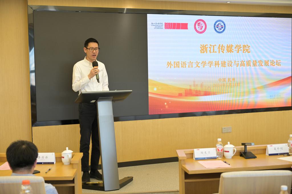 5月14日,浙江傳媒學院外國語言文學學科建設(shè)與高質(zhì)量論壇在錢塘校區(qū)行政樓607-1報告廳舉行。本次論壇由浙江傳媒學院英國研究中心和浙江傳媒學院國際文化傳播學院主辦,浙江傳媒學院文學院協(xié)辦。