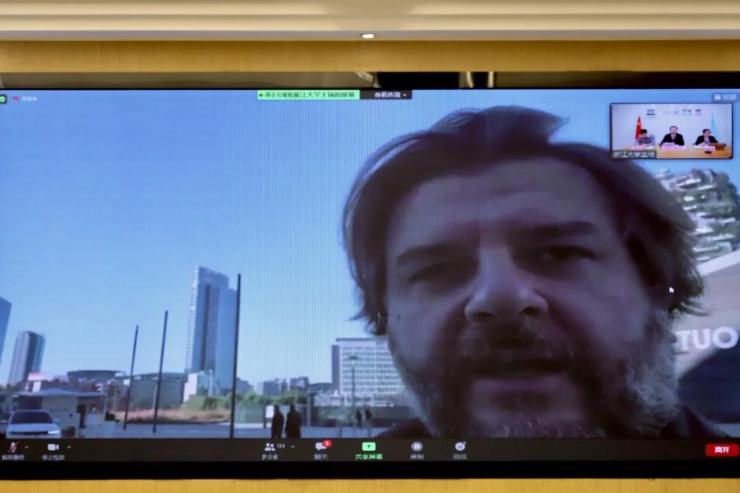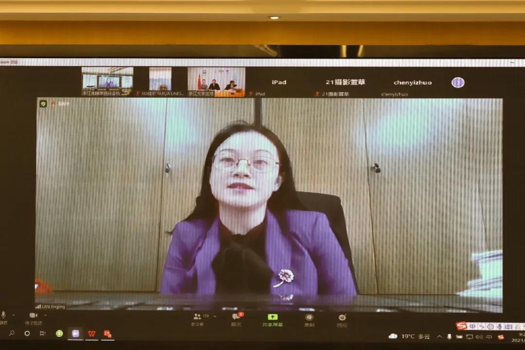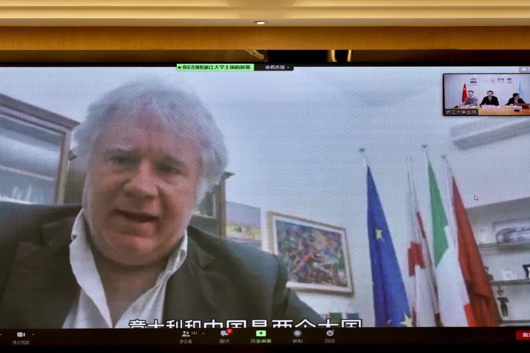 聯合國教科文組織駐華代表處教育項目官員裴伯庸,意大利眾議院議員馬可·奧斯納托,意大利貝加莫省索里索勒市市長斯蒂法諾·維維,聯合國教科文組織浙江大學創業教育教席主持人、聯合國教科文組織中國創業教育聯盟主席、我校校長徐小洲,浙江省教育廳國際合作與交流處處長藍晶晶出席,我校播音主持藝術學院、國際文化傳播學院、媒體工程學院、創業學院以及國際交流合作處師生共同參會。