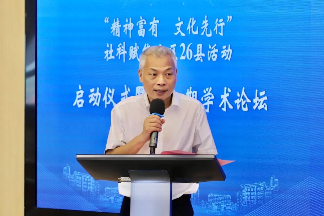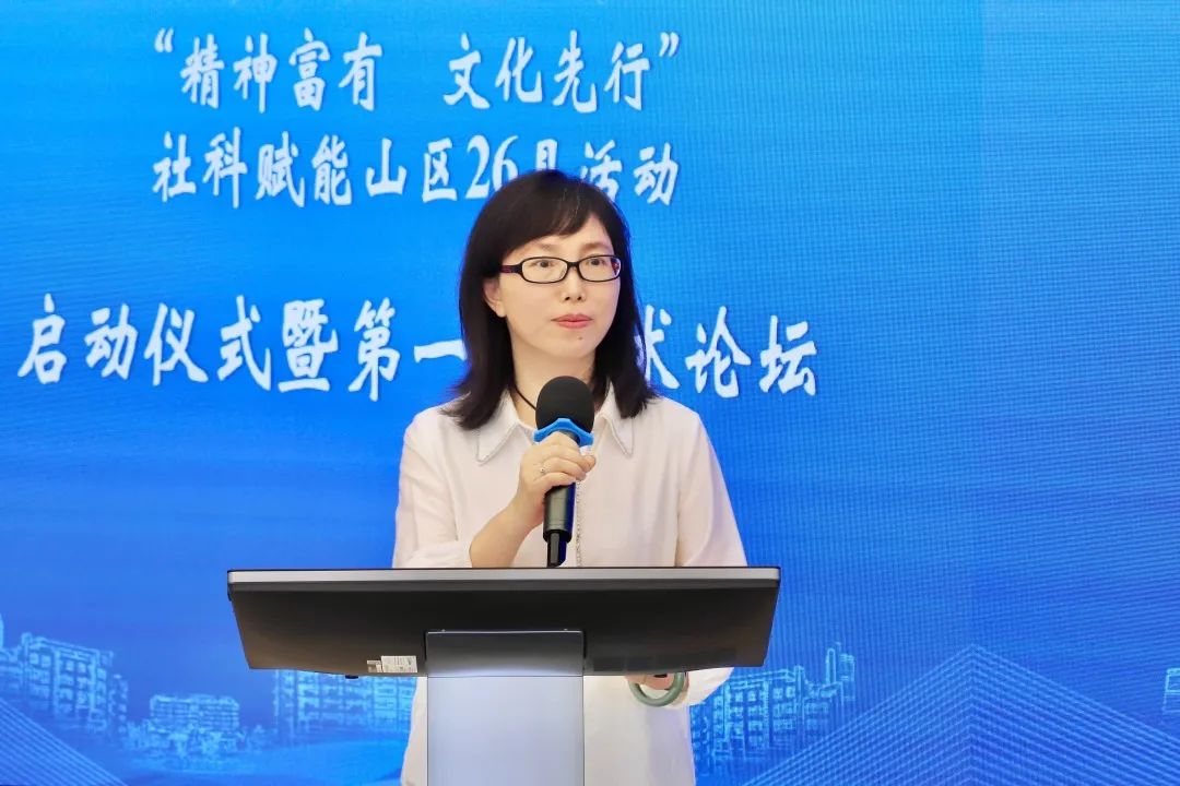 李文冰介紹了社科賦能山區26縣活動的具體內容。本次活動將于今年5—12月推出以“精神富有 文化先行”為主題的“四個一”系列活動,即完成一個重點研究課題、一份高質量調研報告、一系列文化視頻、一系列學術論壇。以重點研究課題深入了解浙江山區26縣建設現狀,分析原因并提出對策;以高質量調研報告為省委省政府決策提供參考;以文化視頻呈現浙江山區26縣文化禮堂的建設現狀、特點以及成果,為全國呈現浙江方案;以學術論壇理論闡釋“社科賦能”,推動社科創新發展,開創高質量發展的新局面。