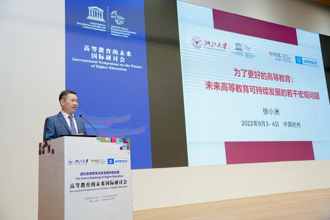 9月3日,由浙江大學主辦,中國聯合國教科文組織全國委員會秘書處指導,聯合國教科文組織浙江大學創業教育教席、浙江大學聯合國教科文組織研究中心承辦,浙江大學教育學院、浙江傳媒學院共同支持的“謀劃高等教育未來發展的路線圖——高等教育的未來國際研討會”在浙江大學紫金港校區舉行。