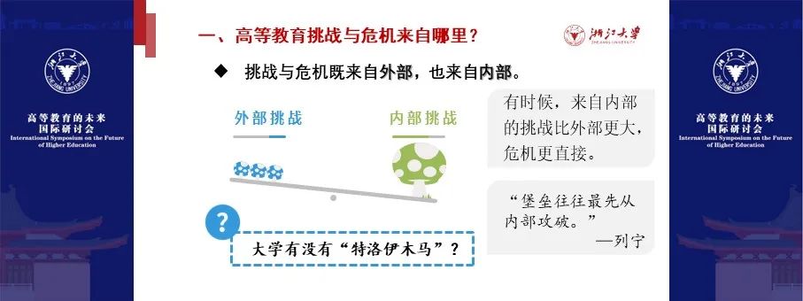 徐小洲表示,挑戰與危機既來自外部,也來自內部。有時候,內部的挑戰比外部更大,危機更直接。