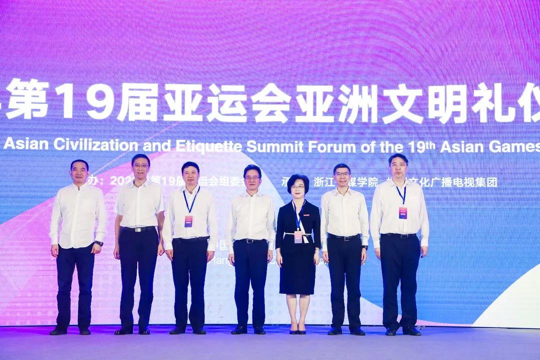 本屆論壇由2022年第19屆亞運會組委會主辦,浙江傳媒學院、杭州文化廣播電視集團承辦。杭州亞組委副秘書長、副市長陳衛強,我校黨委書記楊立平,浙江省文明辦副主任劉如文,我校副校長李文冰,杭州亞組委副秘書長、辦公室主任,市政府副秘書長毛根洪,杭州市委宣傳部副部長、市文明辦主任鈕俊,杭州亞組委宣傳部部長、市委宣傳部副部長許德清,杭州文廣集團黨委委員、副總編輯汪迎忠等杭州亞運會國際文明禮儀大賽各主辦、承辦單位相關領導,清華大學中國經學研究院院長彭林,資深媒體人、北京市政府原新聞發言人王惠,北京師范大學社會學院教授蕭放,浙江大學人文高等研究院特聘研究員龔婭君等國內外文明禮儀領域的專家學者、業界嘉賓以及我校相關職能部門、二級學院負責人、科研院所專家等參加本次論壇。