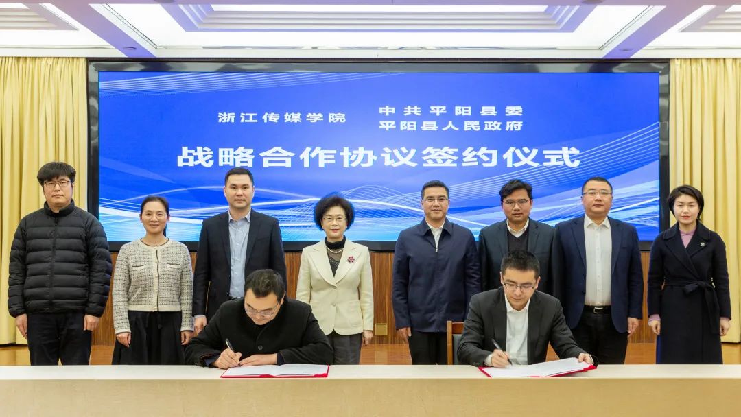 在雙方代表的共同見證下,浙江傳媒學院與平陽縣簽署戰略合作協議。下一步,校地雙方將就推進鄉村振興、大學生實踐基地、文藝創作演出、媒體融合發展、高層次人才培訓等方面開展深入合作交流。