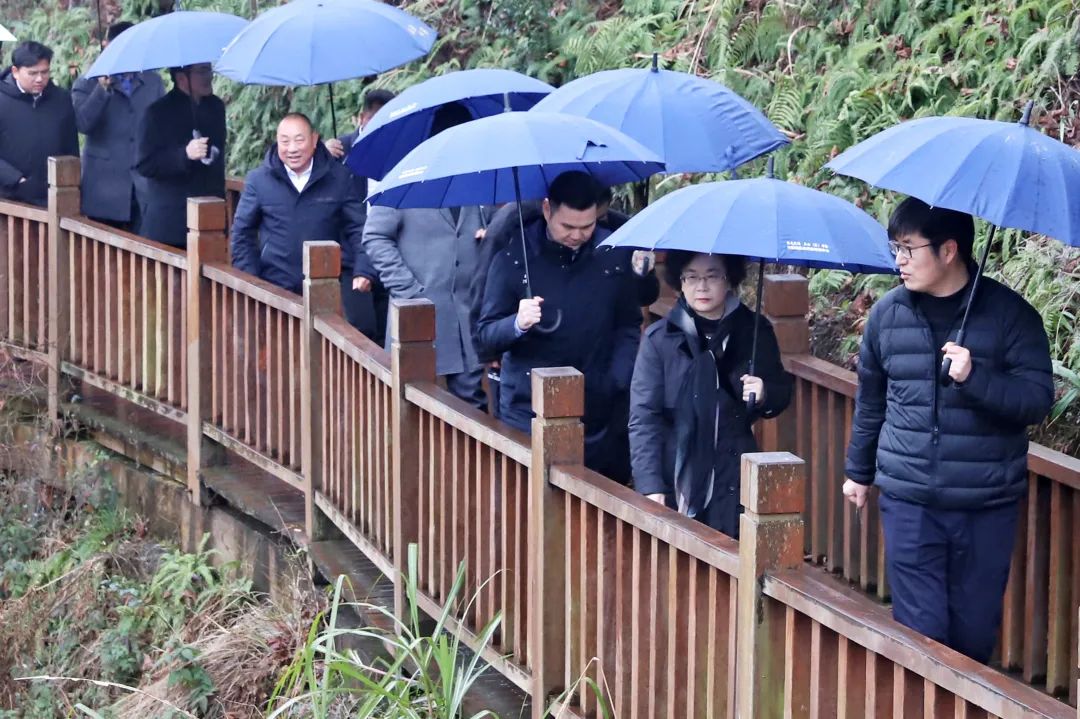 簽約儀式后,楊立平一行冒雨到新聯村開展調研,實地走訪了學校援建的紅色書屋、鄉村文化記憶館、商務接待中心、農產品直銷中心。