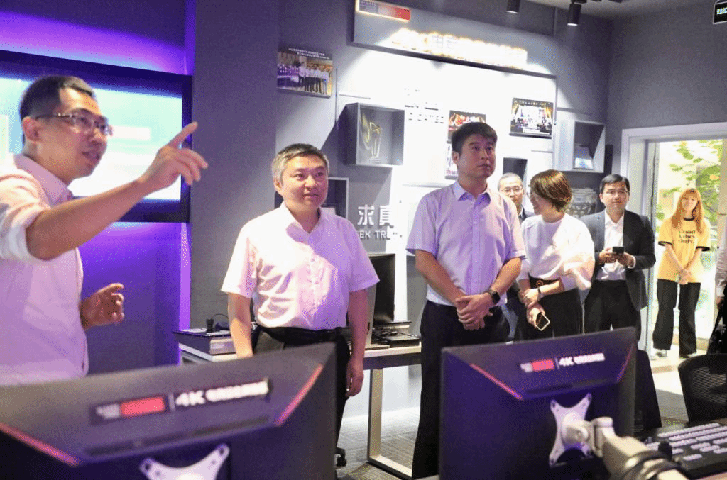 會后,朱林森主任一行在陳永斌等陪同下參觀了學校4K電競綜合實驗室和中國廣播電視藝術資料研究中心。