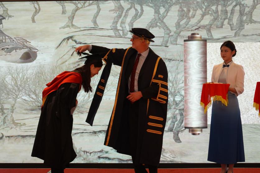 畢業典禮上,徐小洲在致辭中向四屆全體碩士畢業生致以熱烈的祝賀,對博爾頓大學在項目教學運行和碩士培養的努力表示感謝。他指出,兩年學術之旅為同學們提供了很好的人生經歷、學習經歷和知識財富,不僅要適應高強度的學習任務,還要平衡工作、學習和生活之間的關系,非常難得,為大家追尋內心夢想、重新定位人生新征途的勇氣感到驕傲。