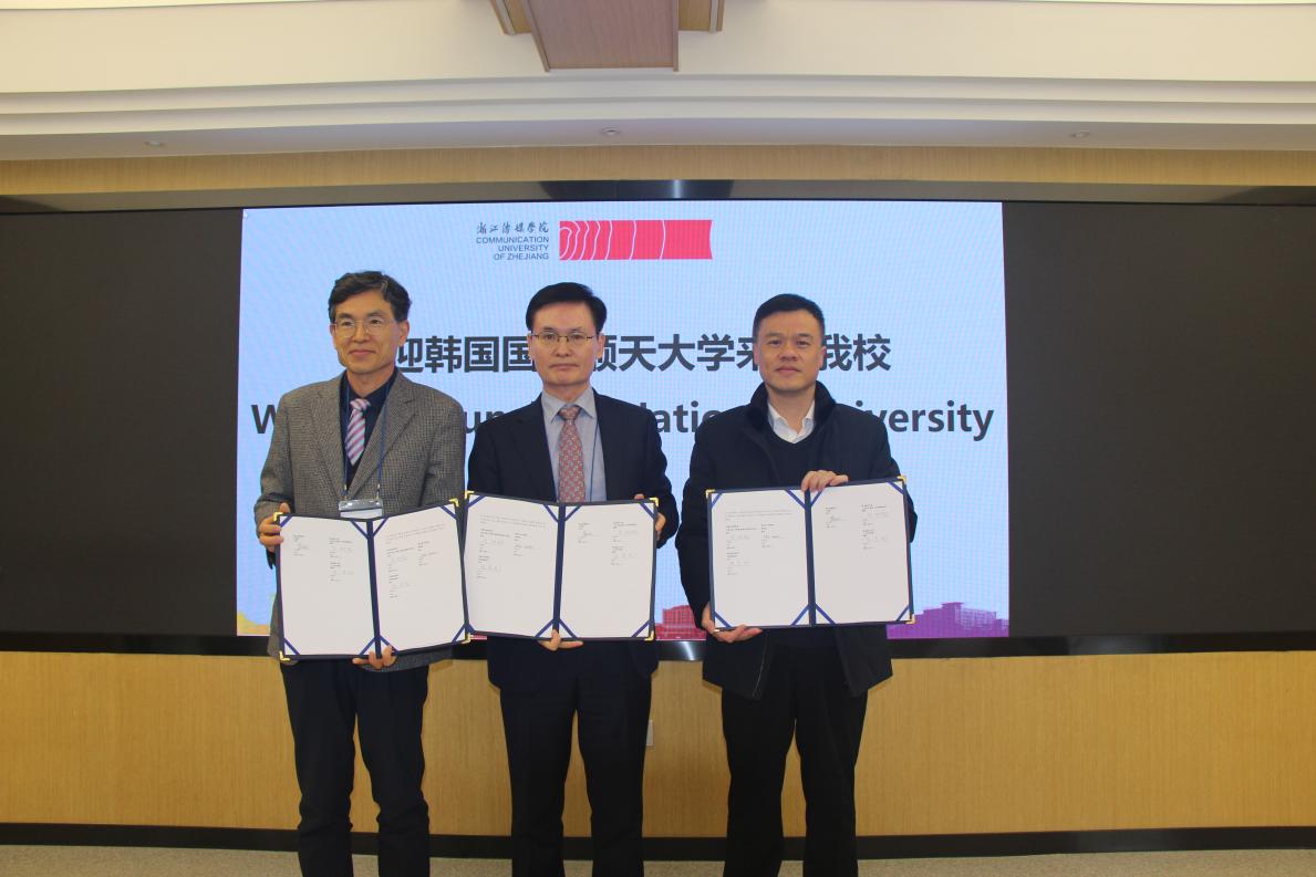 儀式結束后,韓國國立順天大學代表團一行參觀了我校中國廣播電視藝術資料研究中心、4K電競綜合實驗室和桐鄉校區。