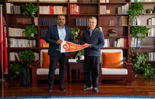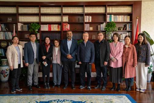 姚爭對AKASH AMIN一行的到來表示歡迎,并簡要介紹了我校辦學(xué)特色和建設(shè)發(fā)展情況。他表示,學(xué)校作為傳媒類院校,廣播電視、電影類專業(yè)特色鮮明,雙方高校專業(yè)契合度高,有很多合作空間,期待未來能和福賽大學(xué)加強(qiáng)交流與合作。